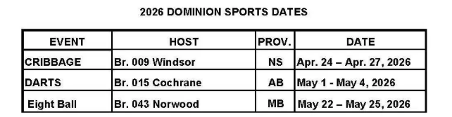For years now, our member’s sports programs have thrived with events happening on all levels from branches up to the Dominion Championships, including darts, and cribbage.