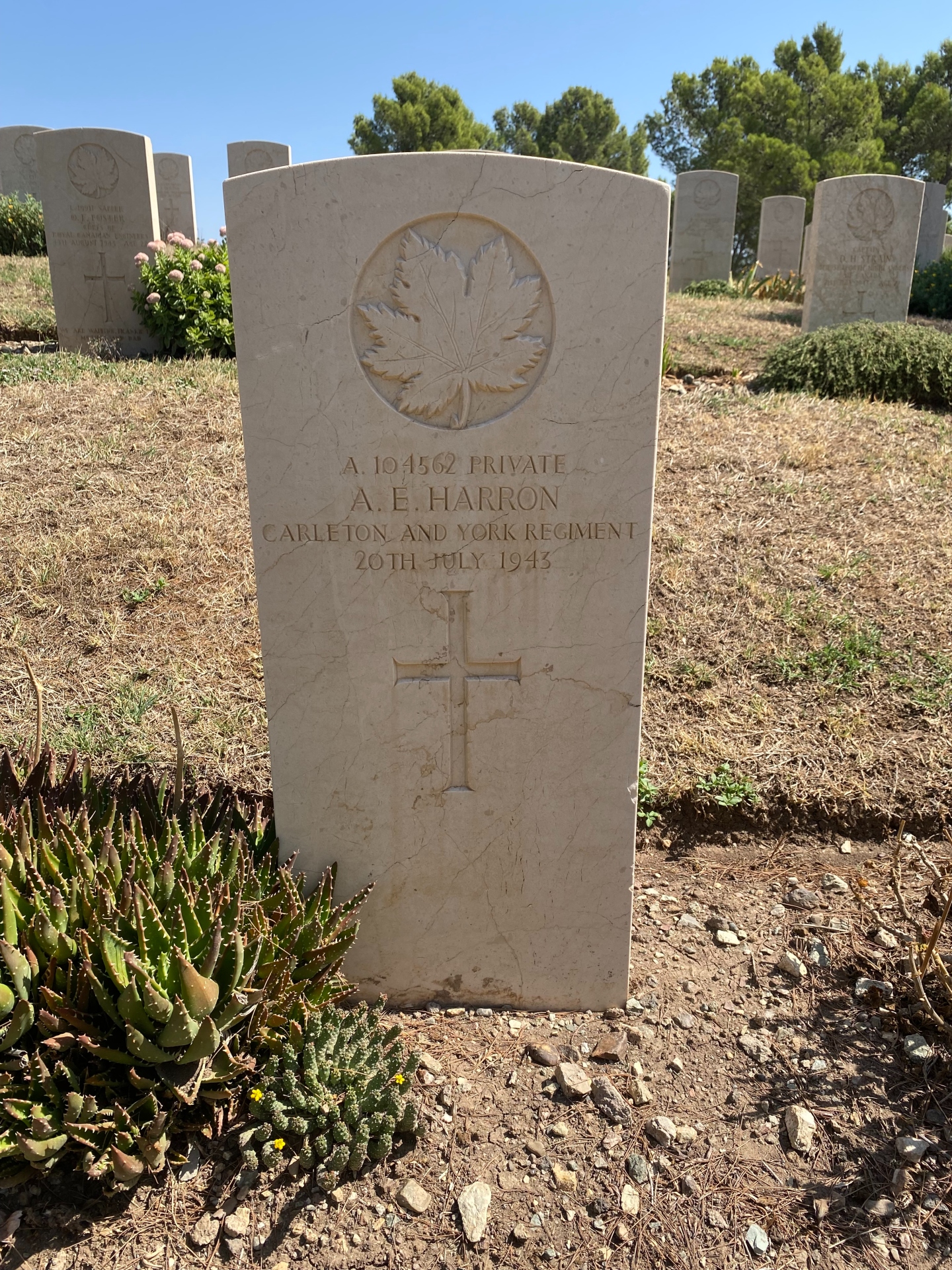| Harron | Alvin | Private | July 20, 1943 | Agira Canadian War Cemertery, Italy | Son of Stanley & Harriet Harron of Arran Township | Link | Link |